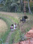 Per il resto tutto bene, siamo stati in due belle guest house, la prima con piscina (di cui qualcuno ha approfittato a lungo, tanto da alzarsi la mattina alle 8 per avere piu’ tempo…), la seconda veramente balinese, con camere molto grandi al secondo piano e vista rilassante sui dintorni di Ubud. Anche dal punto di vista mangereccio le cose vanno abbastanza bene, i piatti indonesiani sono quasi tutti buoni, alcuni anche per chi non ama il piccante o le salsine dolciastre (queste un po’ difficili da evitare….), ma nei tanti ristoranti (la maggiora parte semivuoti, per fortuna l’alta stagione non e’ ancora arrivata, non oso immaginare come sara’ il traffico) si trovano anche piatti ‘internazionali’, tanto che qualcuno ha gia’ ordinato penne al ragu’, pizza al prosciutto e, udite udite, anche i tortelli di zucca….solo che erano conditi con il pesto!!!!!