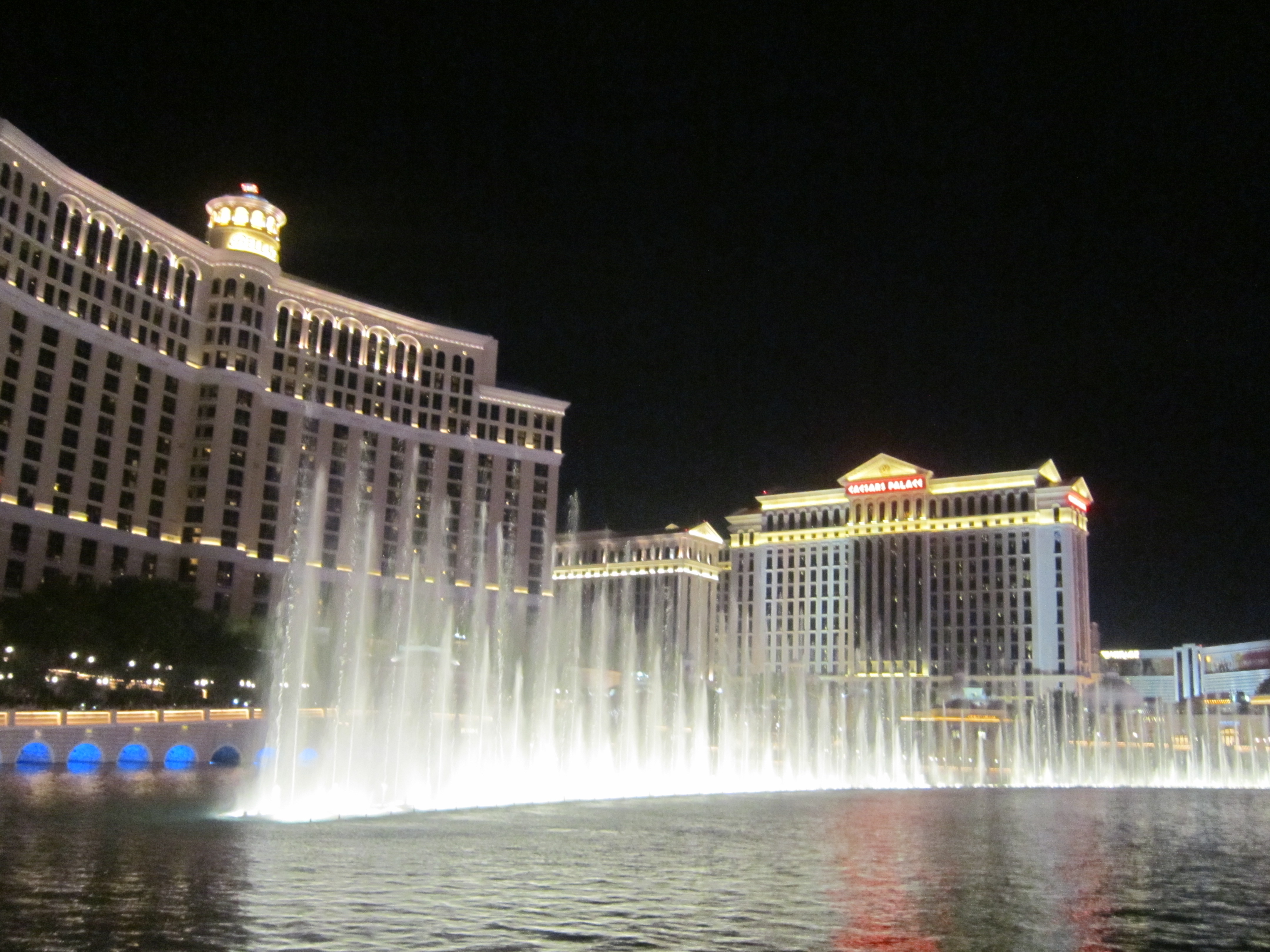 Devo dire che se fosse stato solo per la prima serata il mio giudizio originale sarebbe rimasto invariato: Las Vegas ci ha accolto subito con una caldo pazzesco, piu’ di 46 gradi, va be’, abbiamo detto, rilassiamoci in camera ed in piscina e poi la sera faremo una bella passeggiata…Temperatura serale: 42 gradi, una fornace! E cosi anche attraversare la strada (a 6 corsie) per andare a vedere lo spettacolo delle fontane del Bellagio e’ diventato una tortura, una massa di gente incredibile ed un caldo pazzesco, l’aria condizionata unico alleato possibile.