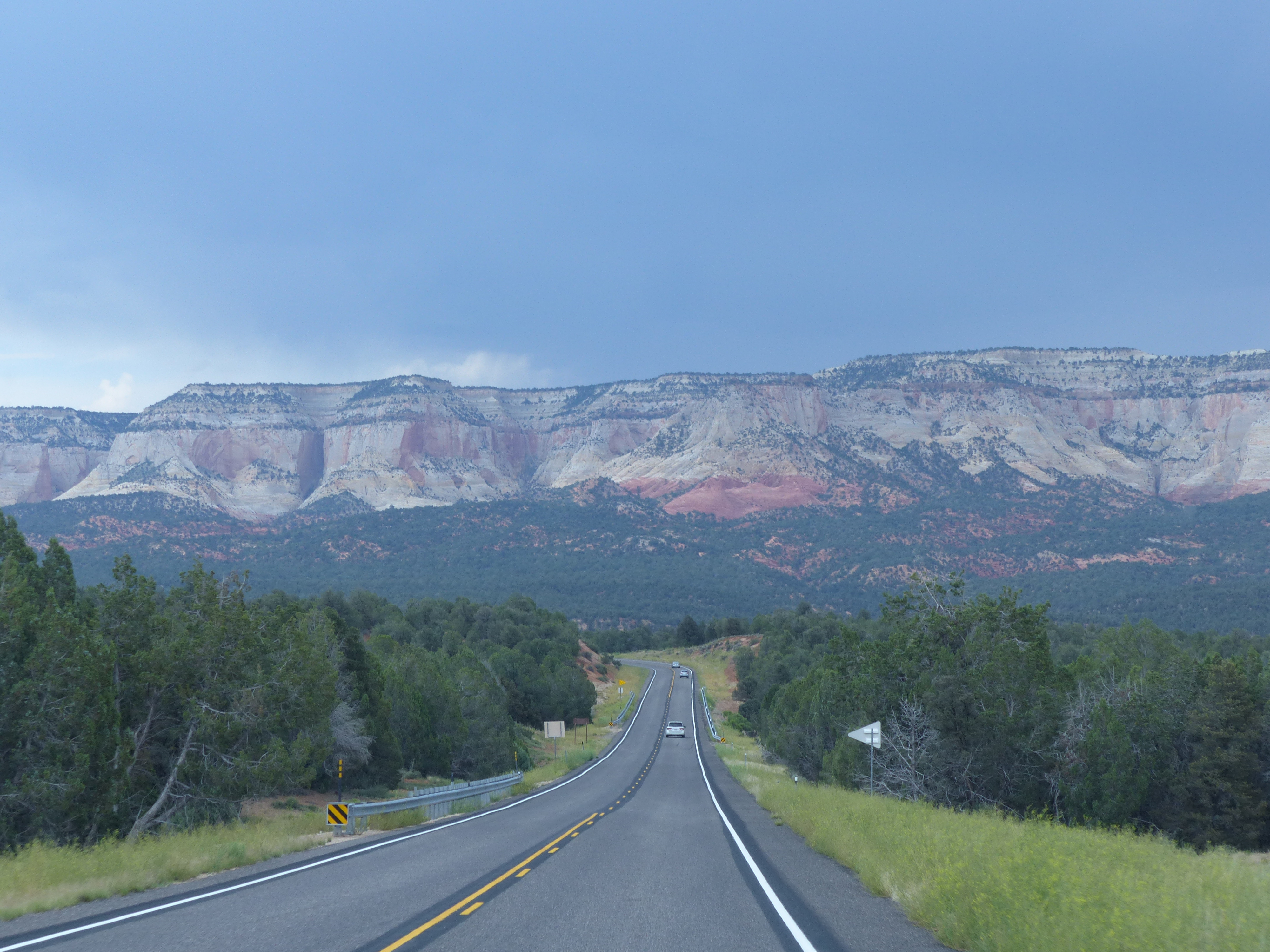 Il trasferimento a Bryce Canyon e’ stato di per se’ molto bello, con una strada dai panorami molto vari, cui e’ difficile rendere merito con degli scatti fatti attraverso il parabrezza: