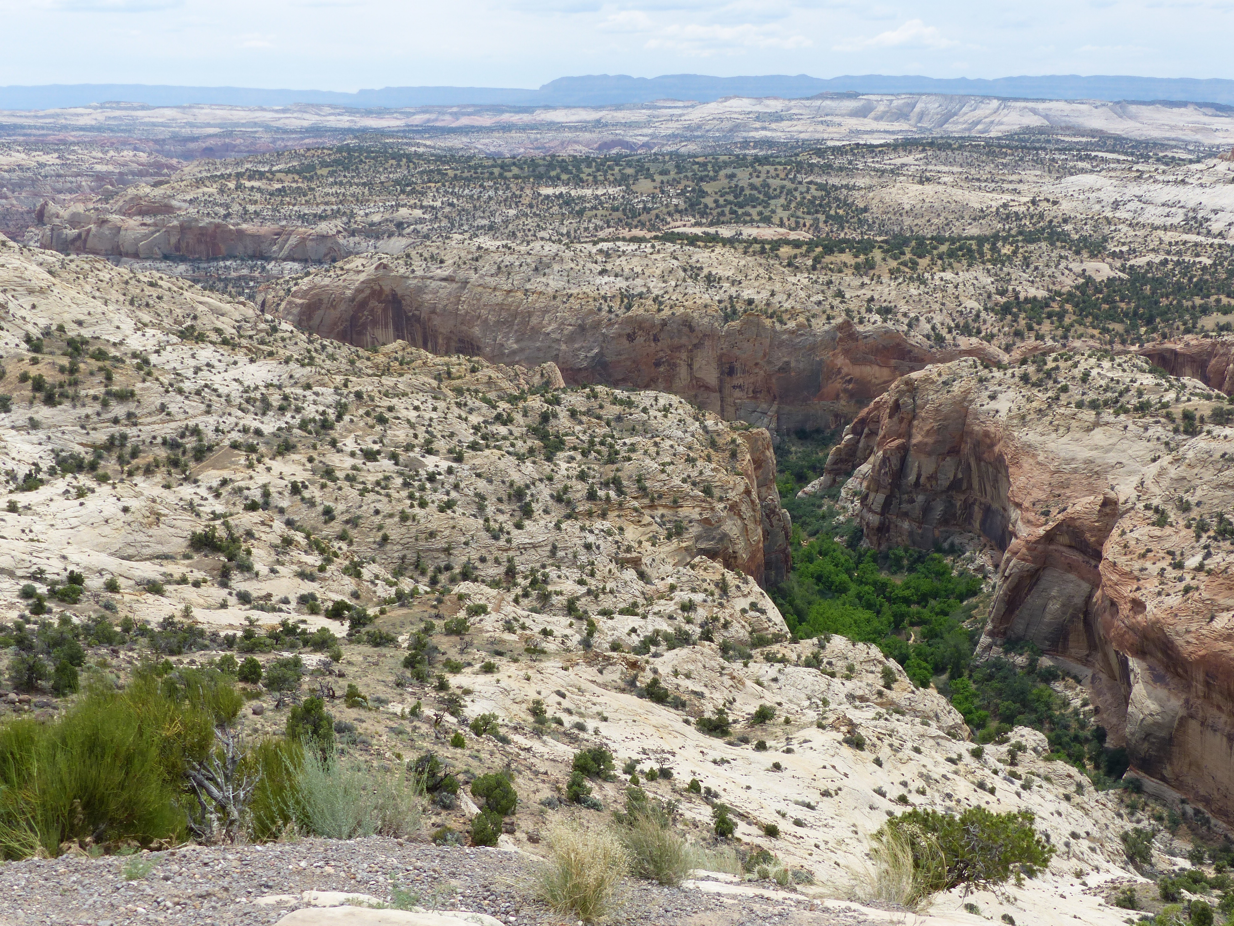 Il “tappone dolomitico” da Bryce a Moab alla fine e’ stato percorso quasi piacevolmente, la strada panoramica numero 12, come peraltro suggerito (con colpevole ritardo! :-)) da un assiduo commentatore del blog, e’ effettivamente panoramica, gli scenari ed i colori cambiano spesso e rendono le quasi 6 ore piu’ piacevoli.