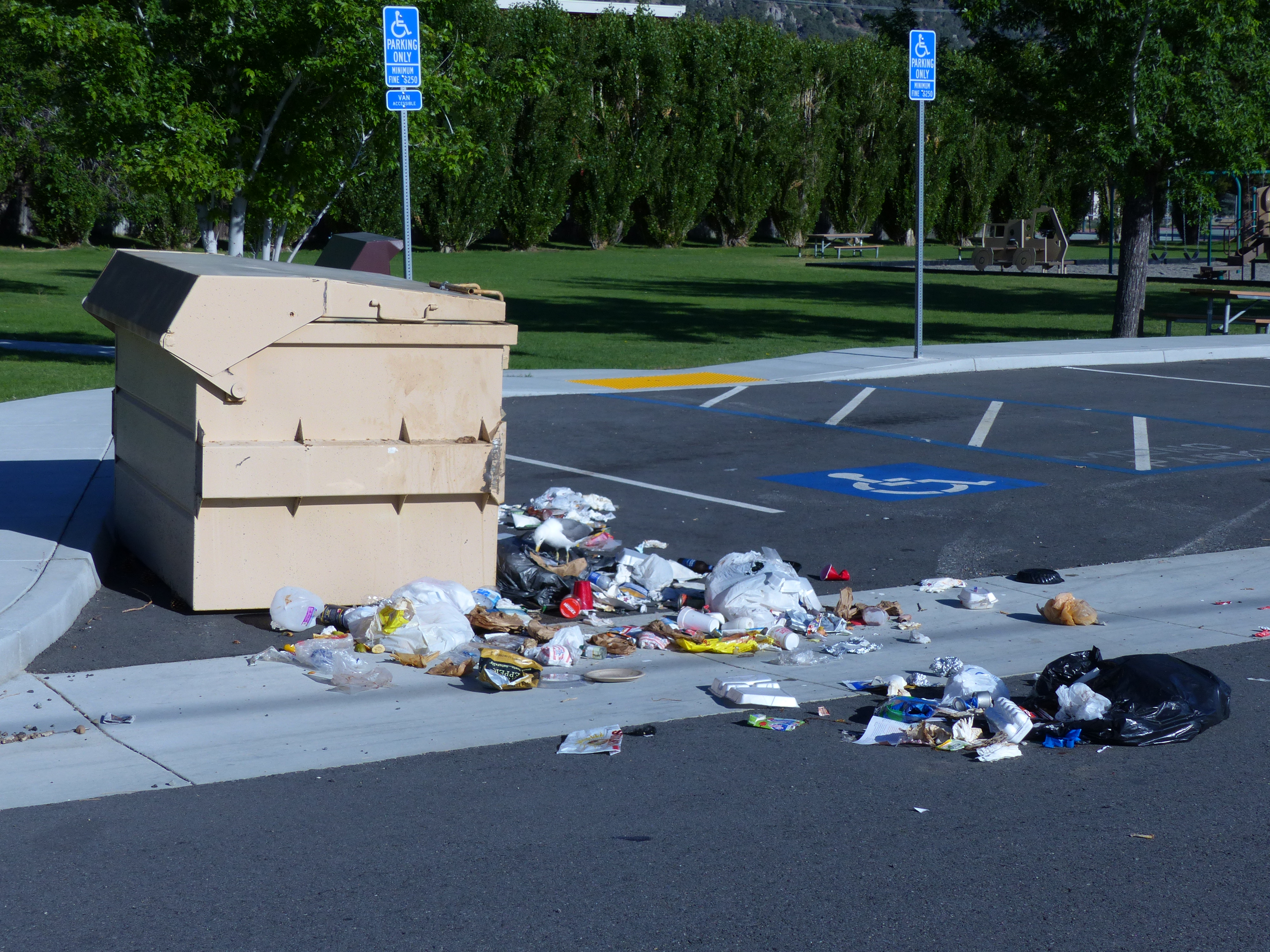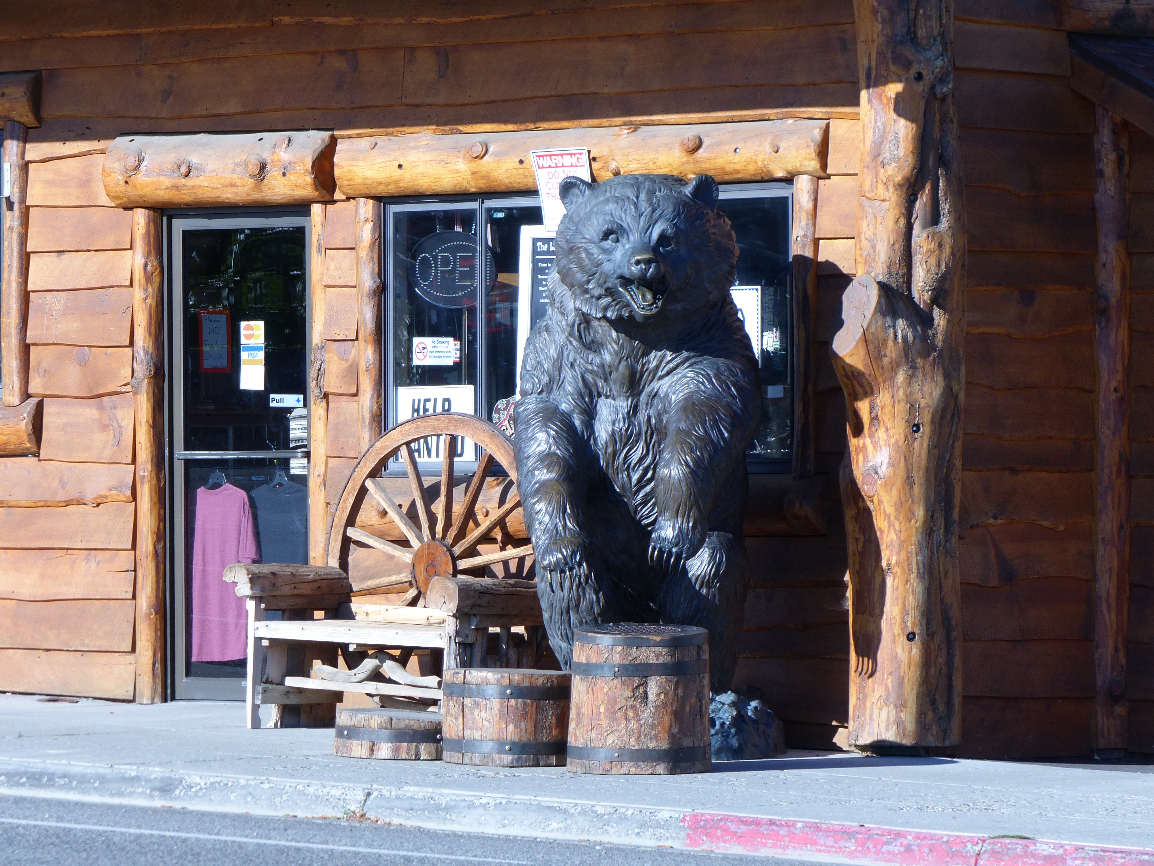Usciti dalla fornace della Death Valley abbiamo trovato rifugio nella fresca Lee Vining dove un bel cottage con 3 camere, cucina, soggiorno e terrazza all’aperto ci invitava a rimanere piu’ a lungo della solita tappa da un giorno (ormai e’ un tormentone: “Quanto restiamo qui?” “Una notte…”). Un po’ meno invitante invece il tipo della reception che ci comunica che la notte prima un orso si e’ introdotto nel coffee shop per svaligiare il freezer…che ci stia prendendo in giro? Per fortuna l’unico orso che vediamo e’ quello di bronzo sulla Main Street, anche se lo stato in cui troviamo un cassonetto la mattina dopo qualche sospetto ce lo lascia: