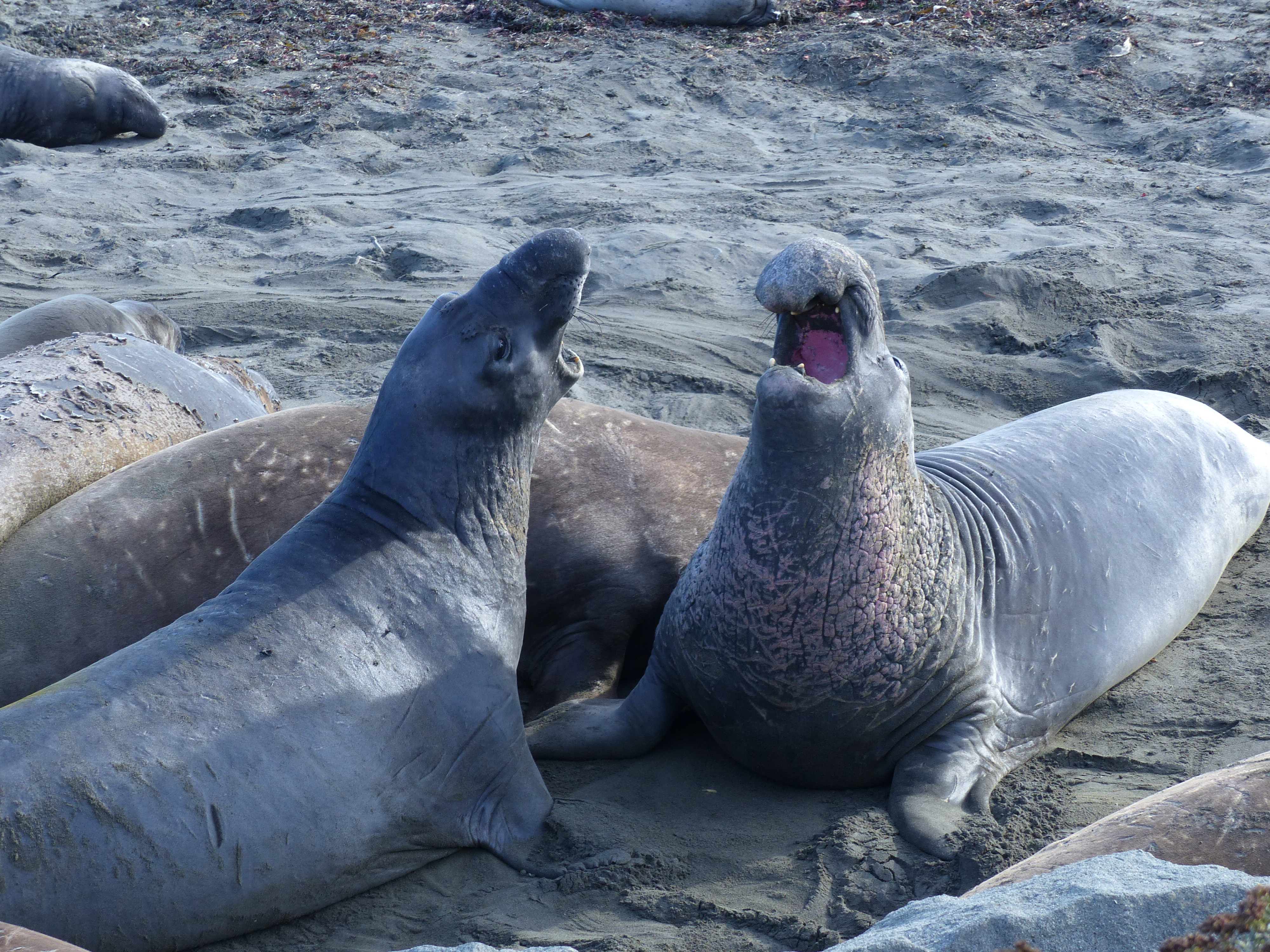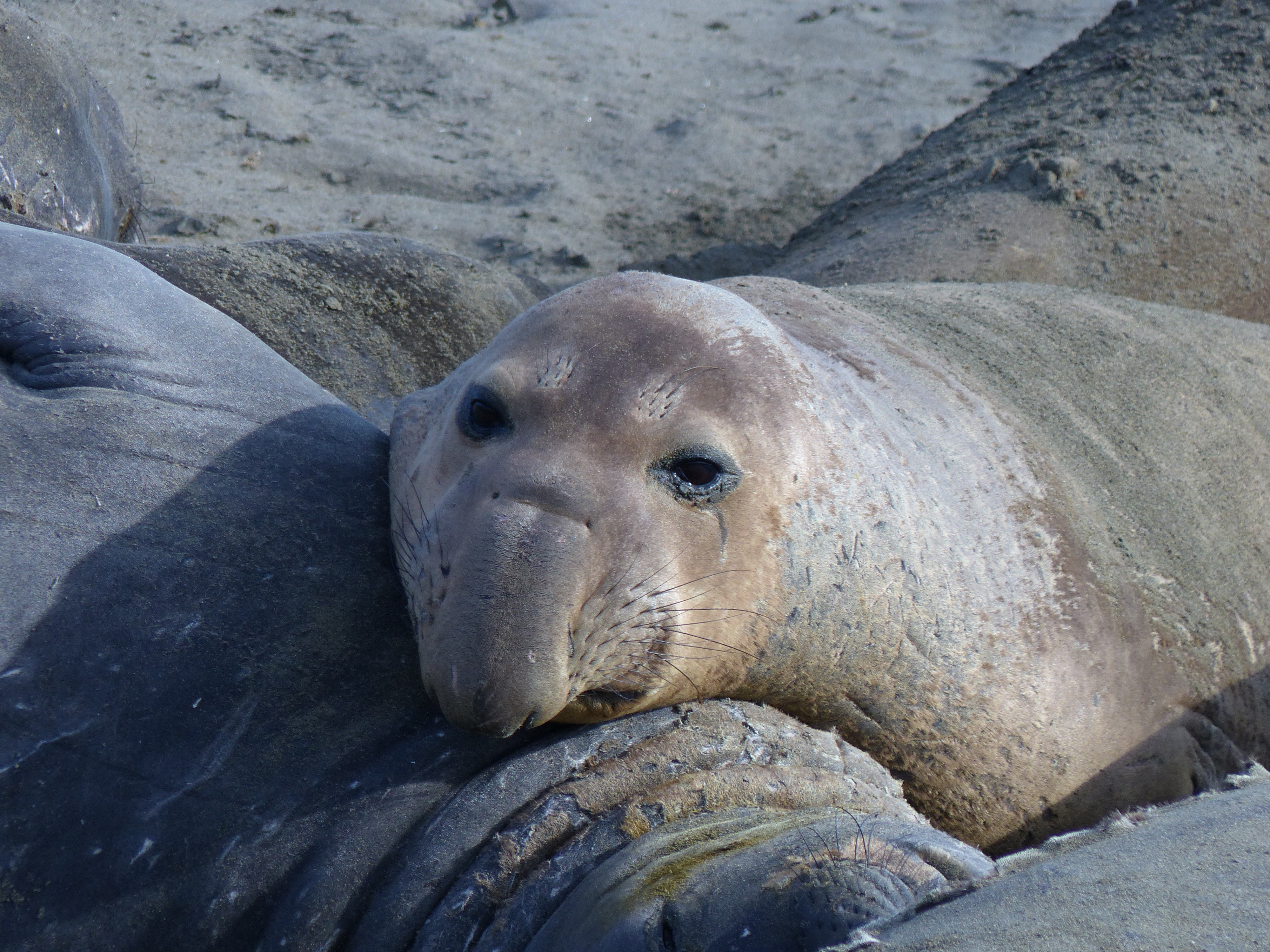 E verso la fine una colonia di elefanti marini, la piu’ grande sulla costa: puzzano tanto, hanno una faccia veramente brutta ma siamo stati una mezz’ora a guardarli e a sentire i loro strani suoni gutturali: