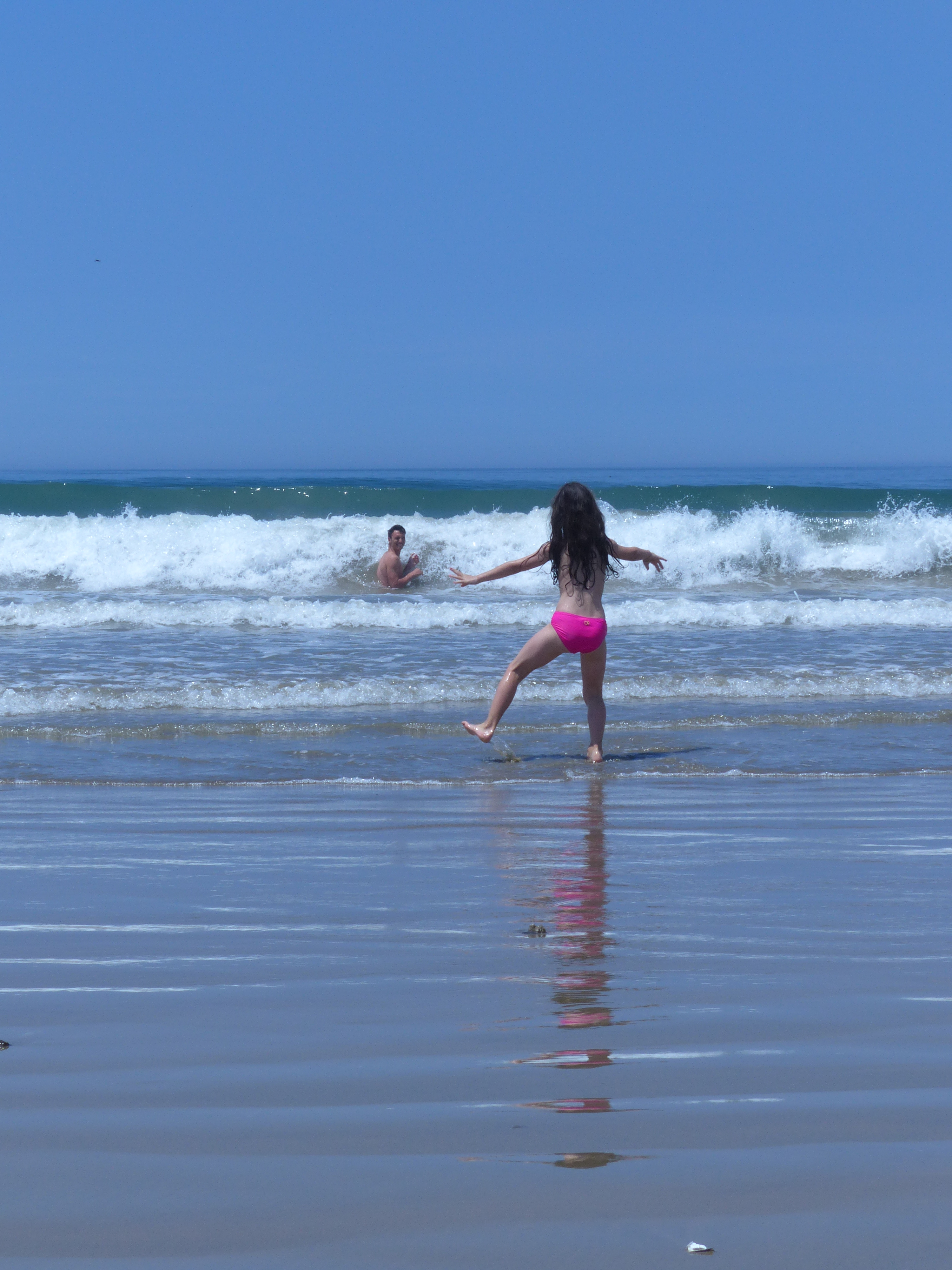 E poi giu’ verso sud sulla Pacific Highway, in cerca di caldo e spiagge di cui si inizia a sentire la mancanza…le spiagge arrivano ma l’acqua e’ GELATA, anche se qualcuno a fare il bagno ci prova: