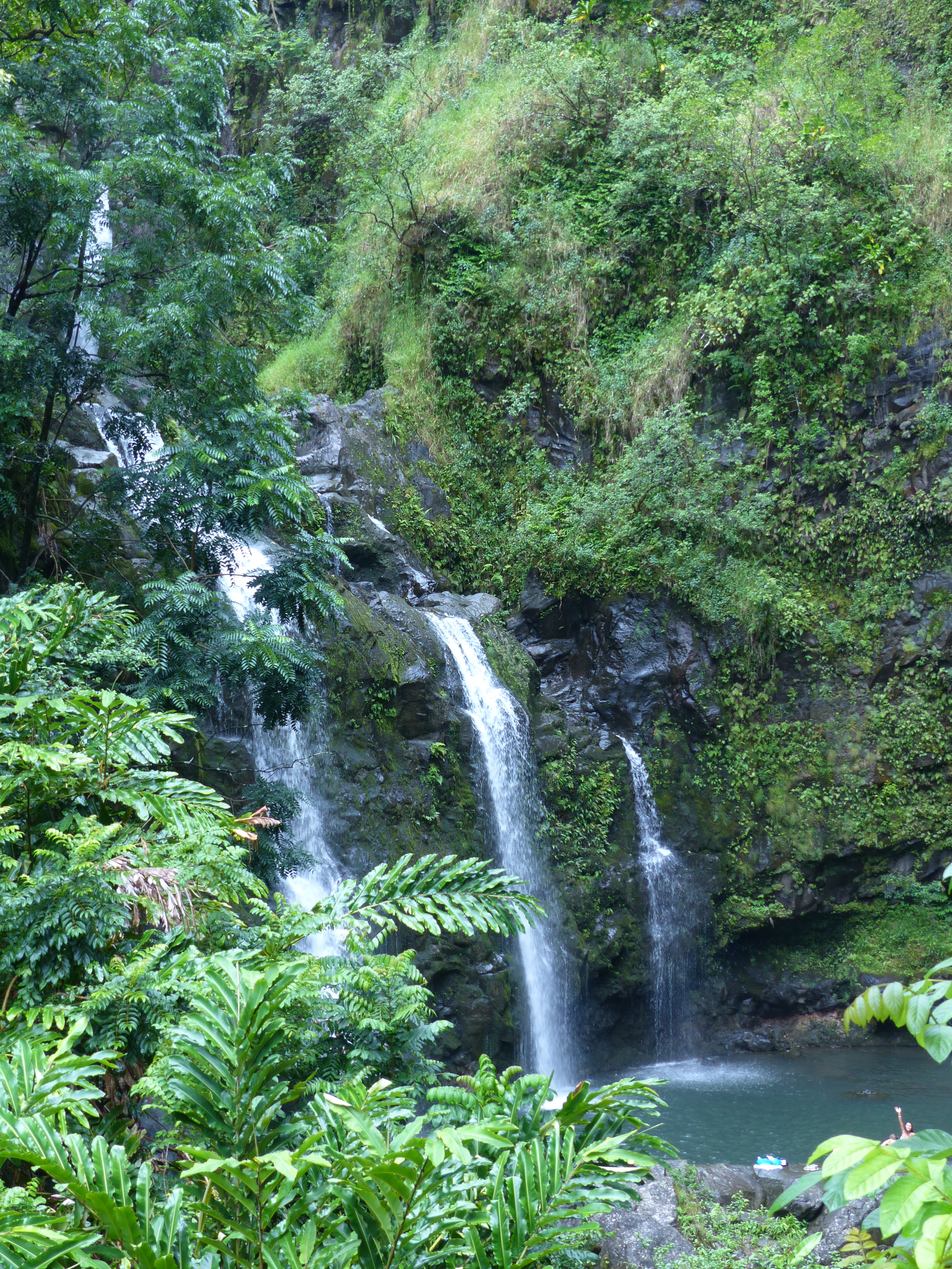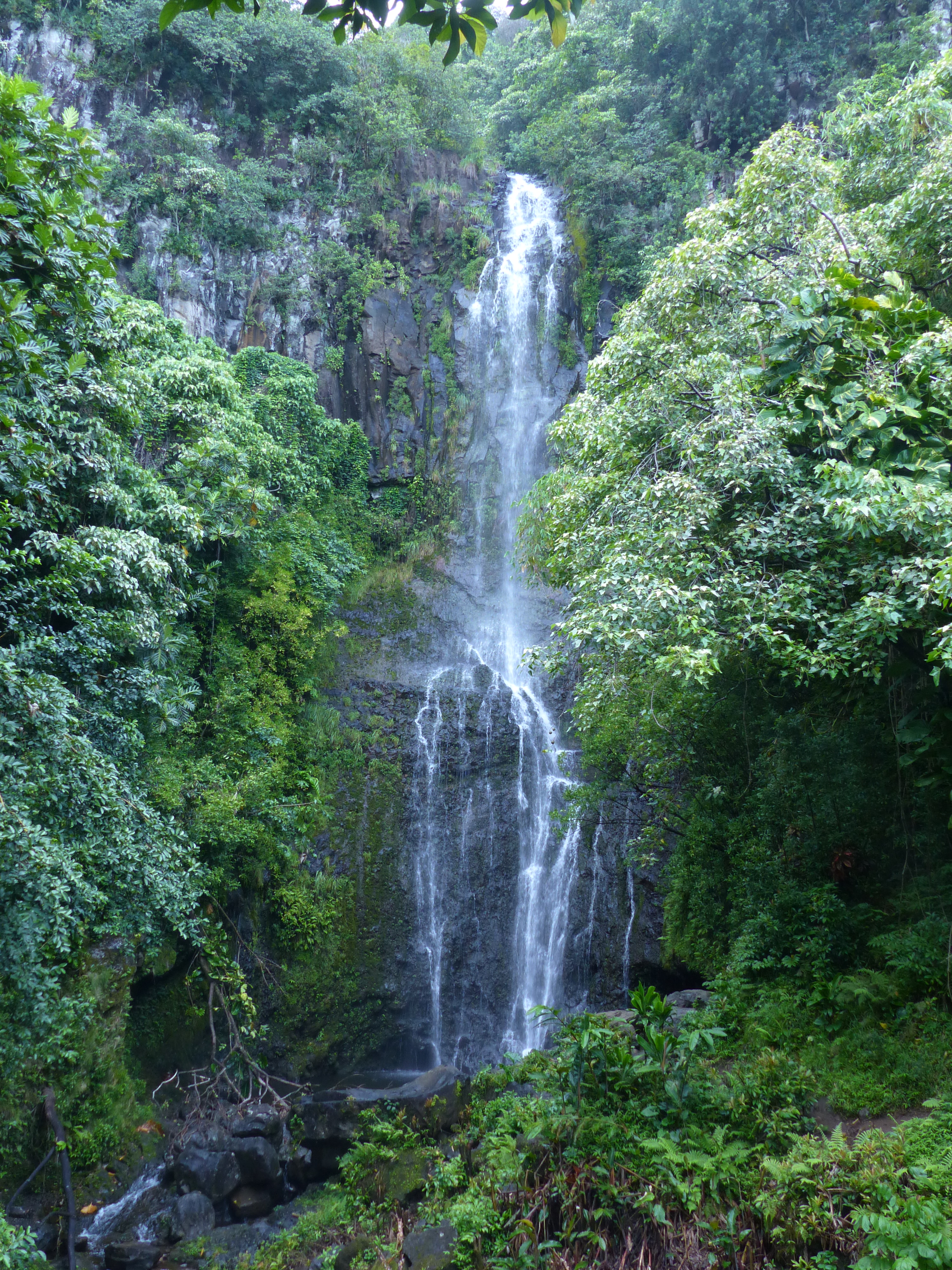 Altra carta vincente di Maui è il suo vulcano più grande, l’Haleakala, che occupa una metà dell’isola riuscendo nell’impresa di mantenerla un po’ selvaggia. L’abbiamo esplorato in due modi: prima percorrendo la famosa strada per Hana (anche se gli americani, che mettono tanta enfasi su quanto sia difficile questa strada, dovrebbero farsi un po’ le ossa su alcune strade della Sardegna o banalmente sulla strada per Morsiano…) che ne cironda la base del versante est, quello umido, ricco di foreste e di infinite cascatelle, molto pittoresche ma alla lunga un po’ noiose: